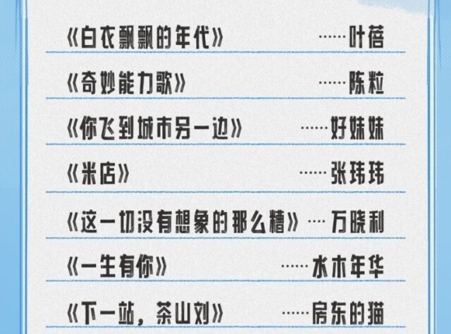除了豪华的阵容外,预告中透出的部分首期歌曲也让网友直呼:“都是一听就有画面感的歌,等了这么久值得了!”陈粒在节目中轻声低喃自己的出圈单曲《奇妙能力歌》,让不少网友表示梦回2015,而好妹妹《你飞到城市另一半》一开口便让人想起自己生命中那个“自在如风的少年”。