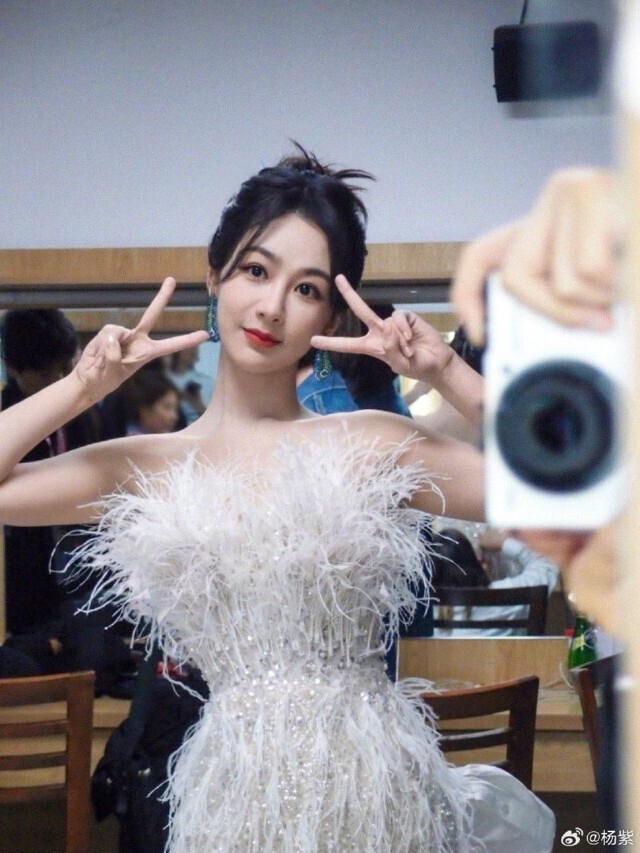 新浪娱乐讯 10月17日,杨紫参加《长相思》演唱会,工作室发布一组后台照。杨紫身穿流光羽毛裙温婉动人,在后台冲镜头双手比耶,可爱俏皮。