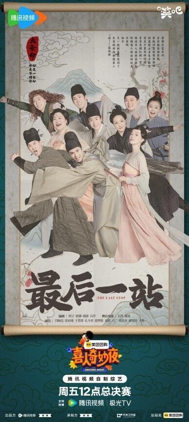伴随着毕业大戏的落幕,陪伴了我们一个夏天的《喜人奇妙夜》也即将告一段落。而这一次的毕业大戏,更是几个喜团融合内心的情感,在极限时间里创作出的诚意之作。十上无难事以演员在舞台上可能出现的各种“bug”为核心,“演砸”了一台疯狂而有趣的舞台剧;九条命以要进贡的荔枝丢失为“game点”,所有演员围绕着隐藏这一秘密、守护进宝官员展开一场精彩有趣的大唐“cosplay”。“只要大声笑,烦恼都丢掉。”毕业的舞台虽有伤感,但所有演员都拼尽全力,继续将这一句slogan贯彻到底,为给大家带来快乐。