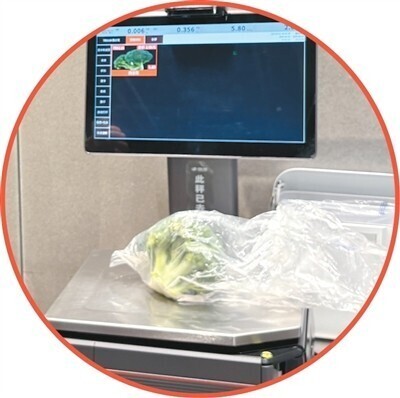超市工作人员告诉笔者,这个秤采用了AI技术,实现了生鲜商品称重无人化。“过去,收银员要记住众多商品的编码,再帮顾客打出价格条,流程很慢。用了智能生鲜秤,这一步骤的效率提高了80%”。
