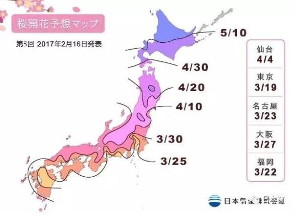 日本气象台16号发布了最新的樱花盛开的时间,东京、大阪、福冈等城市3月中旬就能赏樱啦!