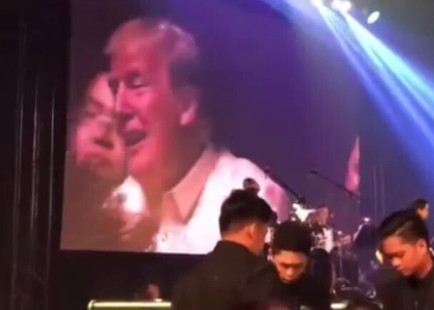 图为杜特尔特在演唱,特朗普则面带笑容在静静“聆听”。