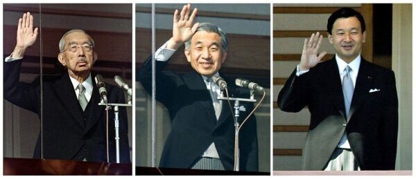 资料图片:日本天皇裕仁(左起)、明仁和皇太子德仁。(台湾联合新闻网)