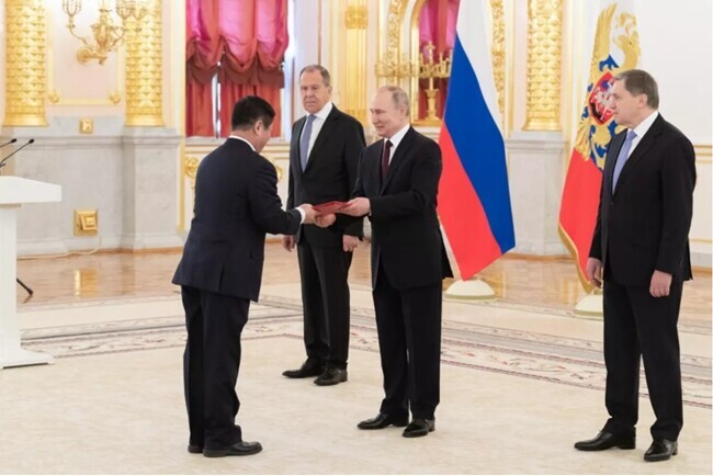 2020年2月5日,中国新任驻俄罗斯大使张汉晖在莫斯科克里姆林宫向普京总统递交国书。