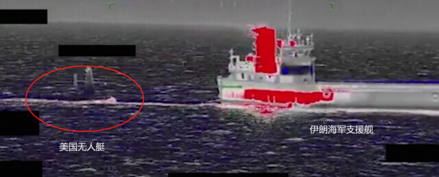 伊朗军舰拖走美国无人艇画面(美国海军)