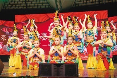 巴西德馨双语学校的孩子们表演少儿民族舞《仙女游云》