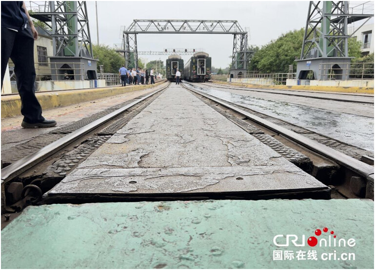 火车栈桥轨道与船舶铁轨对接