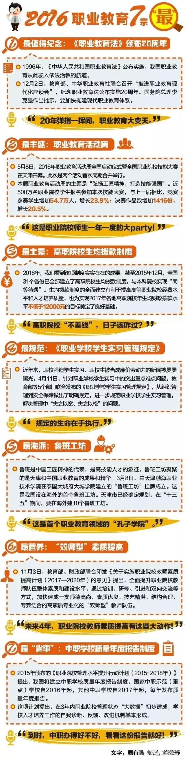 为了让学生学到真正的技能,国家建立职业学校质量报告制度、中职就业报告制度、职业院校教学工作诊断与改进制度,制订《全国职业院校技能大赛实施规划(2016-2020年)》,实施职业院校管理水平提升计划,提高学校管理的科学化、规范化和精细化。