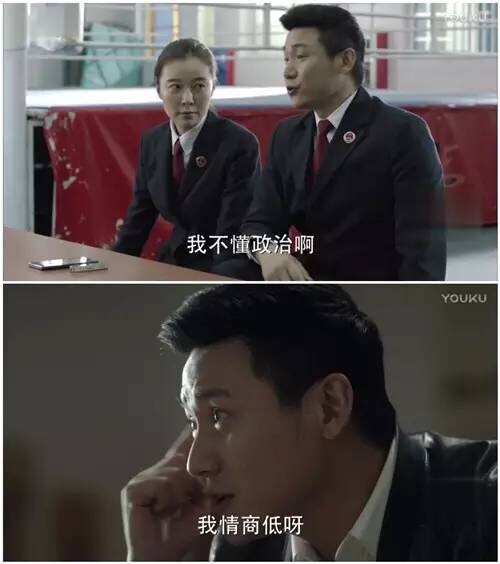 2、穿着,这个就不吐槽了,毕竟其他角色也不接地气(几乎每天都西装革履,这个也是不对的,除了领导级别,一般公务员不会这样),但也可以是个Bug,就是穿得太潮,仅此一点问题;