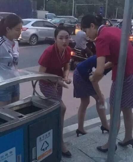 深深为三位乘务员及两位参加急救的年轻人,在急难时刻,跪地救人的举动感动!