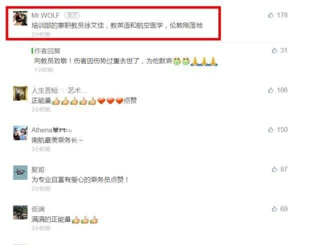 后来,南航空姐们也帮忙跪在地心肺复苏了近半个小时没有放弃。乘务长一直在一旁协助处理。可惜伤者最终因伤势过重未能救回。空乘们因未能救活伤者遗憾哭泣!