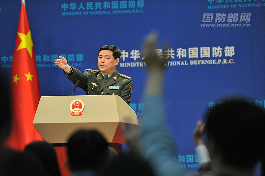 3月29日下午,国防部举行例行记者会,国防部新闻局副局长、国防部新闻发言人任国强大校回答记者提问。李爱明摄