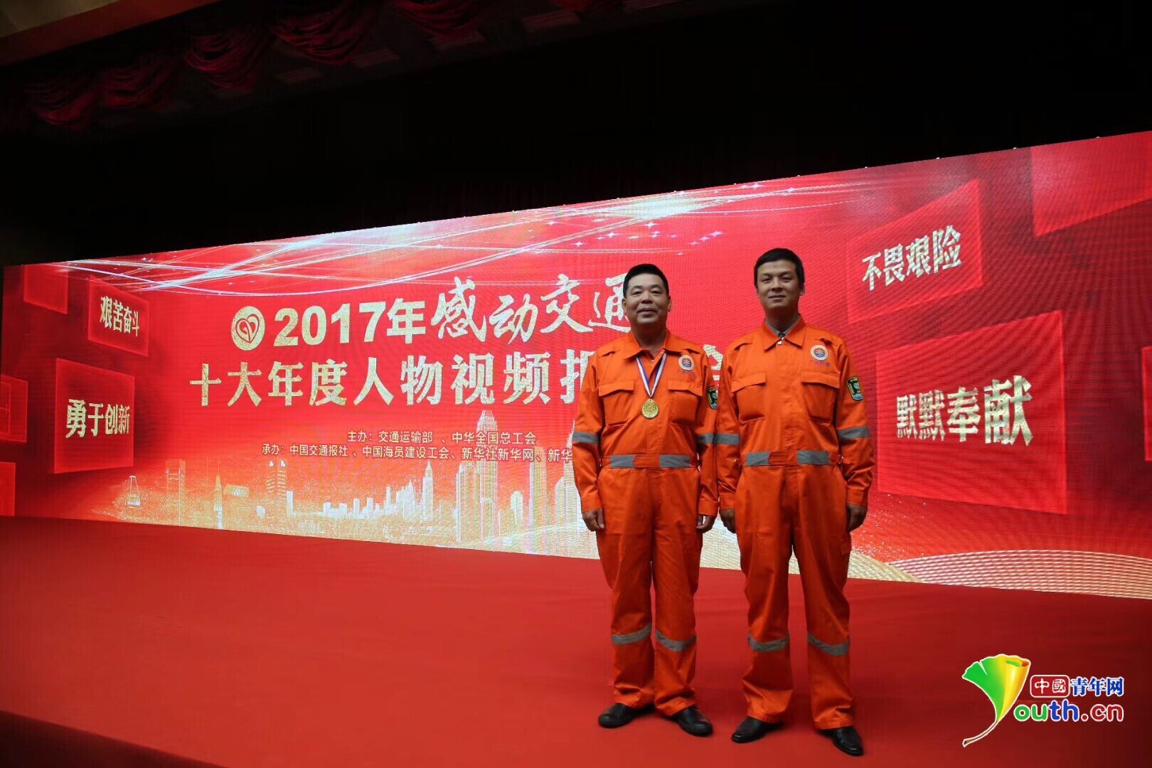 钟海锋(左)与钟佛军(右)在2017年感动交通十大年度人物颁奖现场。本人供图