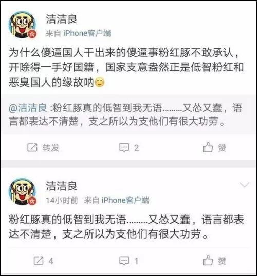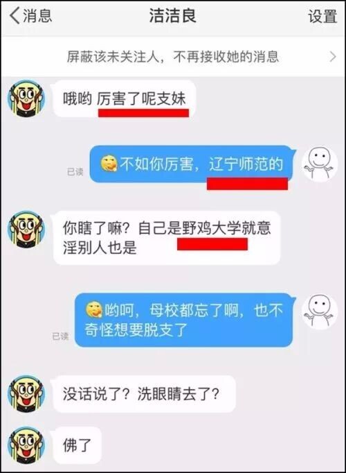 接受过高等教育,又是学生党员,对于培养自己的祖国与母校却这样随意侮辱,怨不得大家不能忍。看来“洁洁良”同学提升自我修养之路,依旧漫长啊。