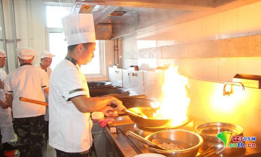 “‘1种特色菜、3菜1汤、1种面点、1种主食’,营养搭配以及在规定的时间利用给养器材单元内完成50人份主副食制作”,考题一出,在场的炊事员们沉重应对,切、揉、炒、炸、刻等基本功大显身手,几番翻锅扬铲后一盘盘美味相继出炉,保质又保量赢得了在场考官的大拇指。