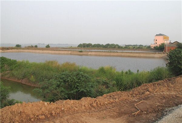 图为曾经的金湖,被承包成一处处鱼塘,杂草丛生。