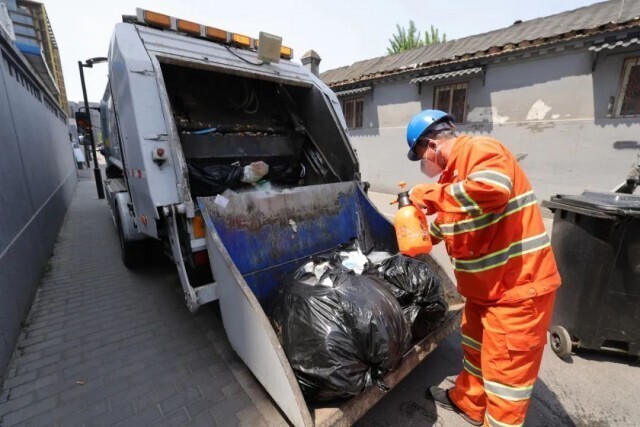 金鱼胡同垃圾转运点位进行装车前的消杀