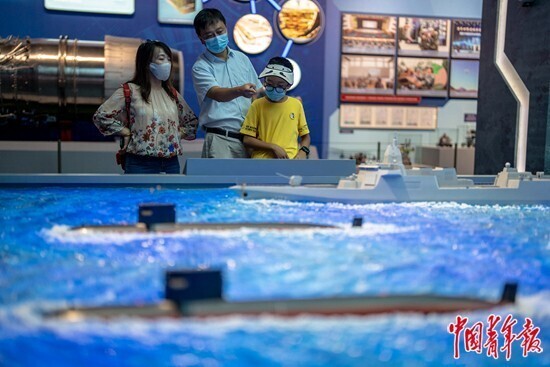 11岁的小学生叶儒霖更喜欢我军主战装备模型台。他是一名小军迷,还曾自己尝试做过辽宁舰的模型。如今在模型台上,等比例缩放的山东舰、辽宁舰双航母编队模型,呈现劈波斩浪的姿态,上方歼-20、运-20等多型战机模型列阵长空,来自陆军、海军、空军、火箭军等多个军兵种在内的主战装备模型一齐亮相,以最直观的方式展示出人民军队武器装备建设跨越式发展取得的成就。