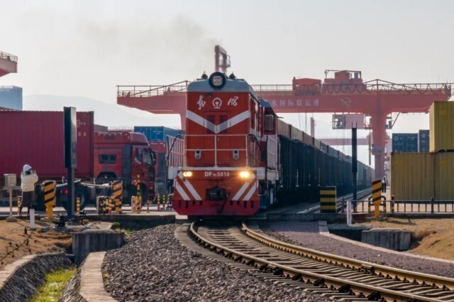 1月31日,满载着货物的列车从铁路金华南站鸣笛启程,经阿拉山口铁路口岸出境,驶往11000多公里外的匈牙利布达佩斯