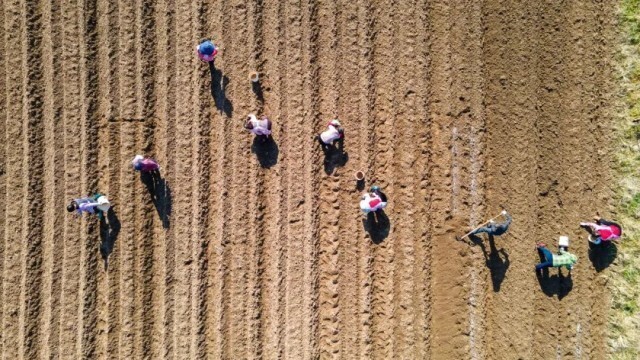 1月30日,在浙江省金华市金东区澧浦镇上宅村马铃薯种植基地,当地农民在进行新品种马铃薯播种 图源:新华社