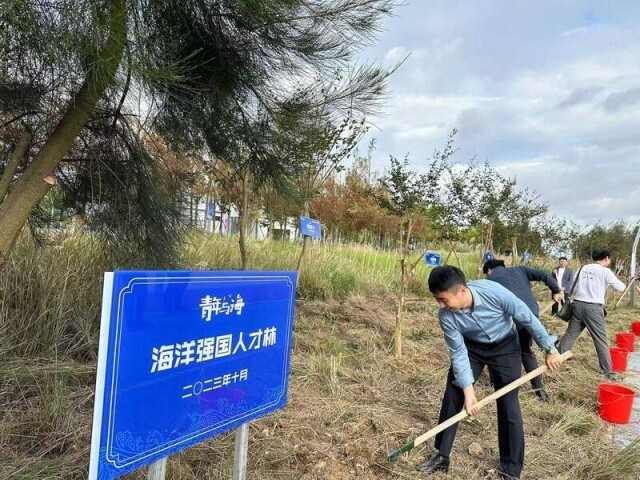 青年科学家在“海洋强国人才林”植树。