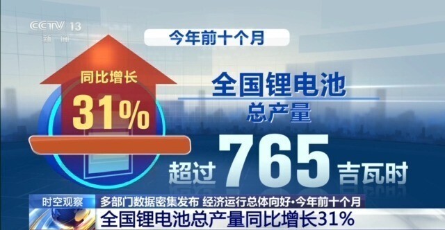 同样是工业和信息化部的数据显示,今年9-10月全国锂电池总产量超过185吉瓦时,同比增长17%,其中储能型锂电池产量超过38吉瓦时,新能源汽车用动力型锂电池装车量约76吉瓦时。今年前十个月全国锂电池总产量超过765吉瓦时,同比增长31%。锂电池出口同样持续增长,今年9-10月期间,全国锂电池出口总额达到824.6亿元,同比增长21%。