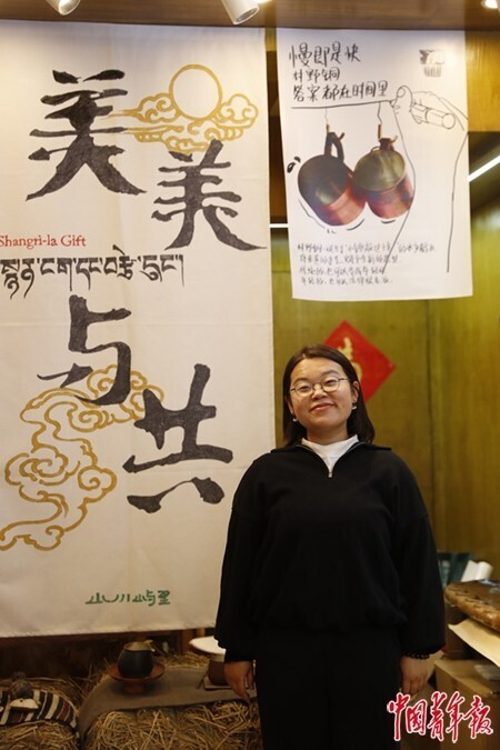 毕业于宁波诺丁汉大学的王炜茜是内蒙古自治区鄂尔多斯市人。因热爱户外运动,从上海来到香格里拉,并决定留下来。去年9月,她与合作伙伴一起在古城开了农创+文创的伴手礼店“山川屿里”,售卖的东西除自己上海工作室设计的外,更多的是与迪庆当地乡村手工艺人合作原创的产品。