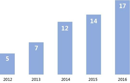 美食类节目一直以来都是传统的电视节目类型,国内早期的美食节目有1992年的《天天饮食》,后来又有2009年的《爽食行天下》等,直到2012年《舌尖上的中国》引爆了观众对美食题材的兴趣,于是各大卫视平台集体推出美食类综艺,2014年起,涌现出了《十二道锋味》、《星厨驾到》、《美味星婆媳》等节目,视频网站也推出了美食类网综《拜托了冰箱》,一时间节目数量大幅上升,形成了一波美食综艺潮流。根据艺恩咨询数据,2012年几大平台主打美食的综艺节目不过5档,而到2016年已经超过17档,增幅高达240%。