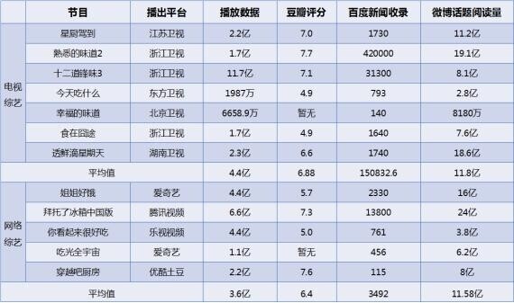 图2:(部分)电视综艺与网络综艺各方数据对比