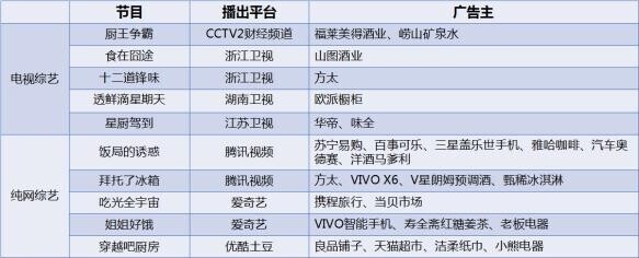 在2017年综艺节目整体招商不乐观的形势下,美食类网综在吸引广告投资方面的优势将进一步突显,这一优势也许会为美食类网综带来更大的发展空间。