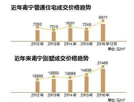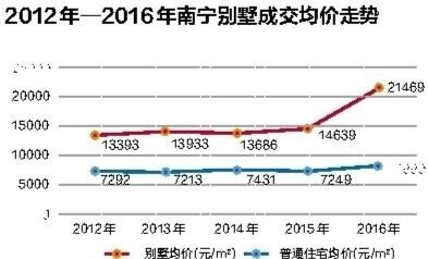“纵观全国,南宁别墅市场被低估了!目前凤岭、五象湖一带的大平层单价高居1.6万至1.8万元/平方米,在售别墅的均价也就2万元出头。”南宁市荣申博地产营销机构总经理陈戈表示,从克而瑞2016年南宁市房地产市场年报来看,从2012年起,别墅成交价仅是普通住宅成交价的2倍。纵观北京、广州、上海、深圳等一线城市,同区域的别墅价格已是普通住宅的3~5倍。