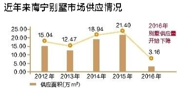 据统计,目前南宁别墅市场存量为27.46万平方米,2016年别墅全年仅供应了3.16万平方米,成交量为12.27万平方米,供求比仅为0.26。“需求在扩容,而供应却跟不上。‘禁墅令’的出台让别墅资源的稀缺性进一步凸显。”广西国悦房地产开发有限公司副总经理彭燕称。