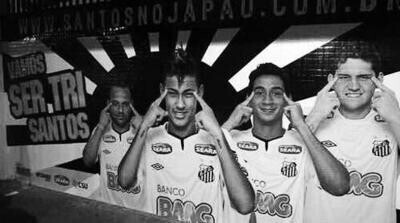 如今当红的内马尔,曾在日本参加世俱杯时,与桑托斯队友们集体拍摄过类似动作的宣传照。就连效力于天津权健的帕托和曾效力广州恒大的罗比尼奥,在代表AC米兰在鸟巢参赛时,都有过这样的动作。不仅限于足球圈,2008年北京奥运会前夕,西班牙男女篮球队在一组集体照里做出了类似动作,当时也引发了轩然大波。