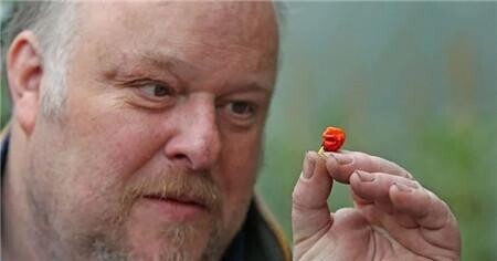 英国威尔士果农迈克·史密斯(Mike Smith)为参加全国园艺展培育新奇辣椒时,他绝未想到会培育出世界上最辣的辣椒。这种辣椒名为Dragon’s Breath,可能会致人过敏性休克,甚至有死亡风险。