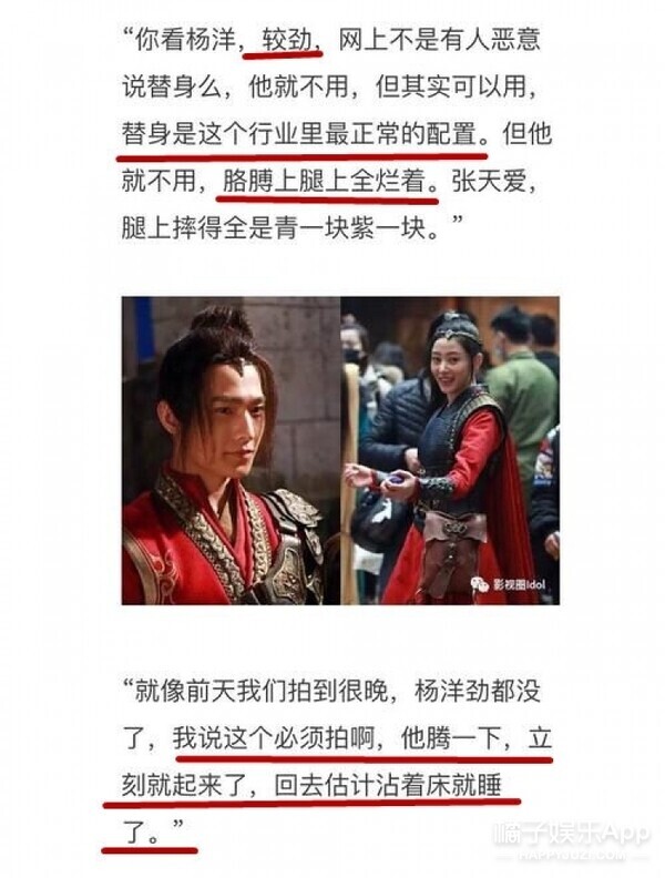 说到拍戏,杨洋在片场受的伤还真不少,尤其是拍《武动乾坤》,导演张黎在采访中也提到过:“他(杨洋)胳膊上腿上全烂着”