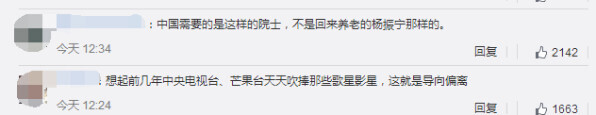 有网友捎带上了别的老先生:中国需要的是这样的院士,不是回来养老的杨振宁那样的。