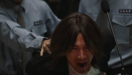 他不顾阻拦,在法庭上努力证明自己可以讲话,很艰难地张口一字一字朗读。这演技差点以为赵又廷真的失语了。