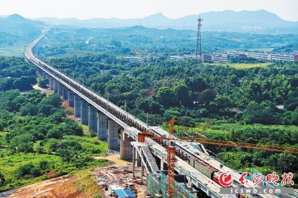 昨日,长株潭城际铁路长沙站以西段圆满完成全线铺轨任务。长沙晚报记者 王志伟 通讯员 刘攀 摄影报道