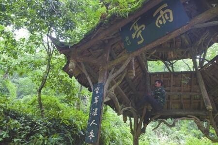 稍稍留心便会发现,这些茅亭的屋顶顶着厚厚的青苔,下面覆盖的不是瓦片,而是树皮铺设的。这些散落在密林流水之间的茅亭,更像是大自然的手笔。原木为柱,枯藤为挂,树皮为瓦盖,老根为凳,雨天不漏,炎日无暑,与清幽山景浑然一体。这随影赋形的背后,是能工巧匠的遗风、更是历代匠人精心守护的结果。