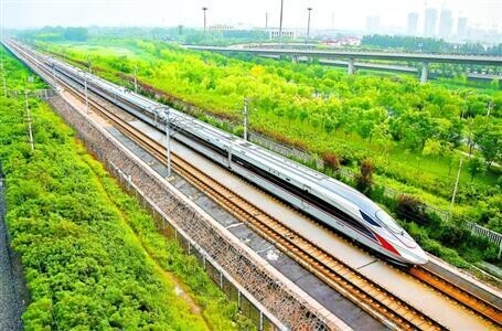 昨天,从北京南开往天津的C2001次“复兴号”动车组驶入天津市区。新华社发