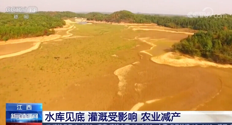 在江西泰和县,全县62座小二型水库,有24座从今年9月份开始缺水干涸,水位低于排水口,无法放水灌溉,导致全县11万亩稻田因干旱产量受损。
