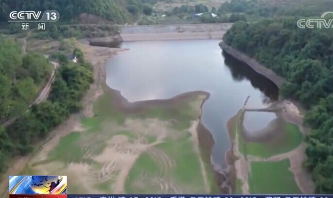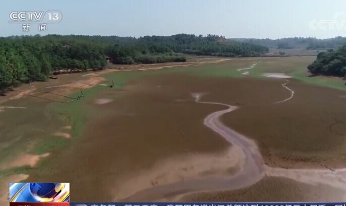 蓄水量为26.8万立方米的江西赣州信丰县大塘埠镇万星水库存水量只剩五分之一,原来近3米深的水量现在只剩50厘米,为有记录以来的最低水平。