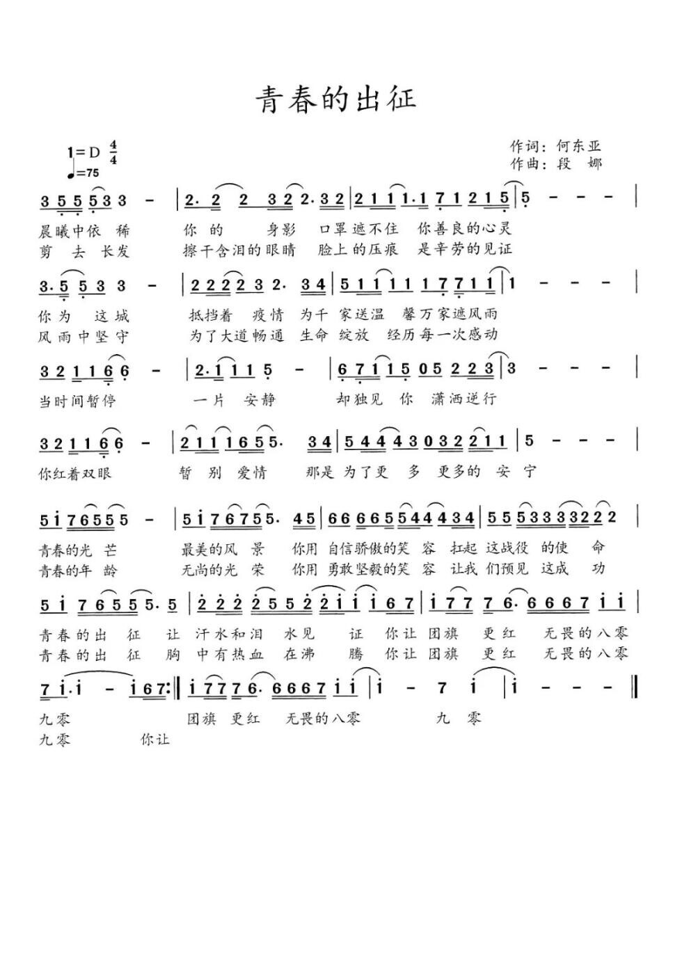 谨以此歌献给每一位战斗在抗疫一线和即将出征抗疫一线的青年勇士。