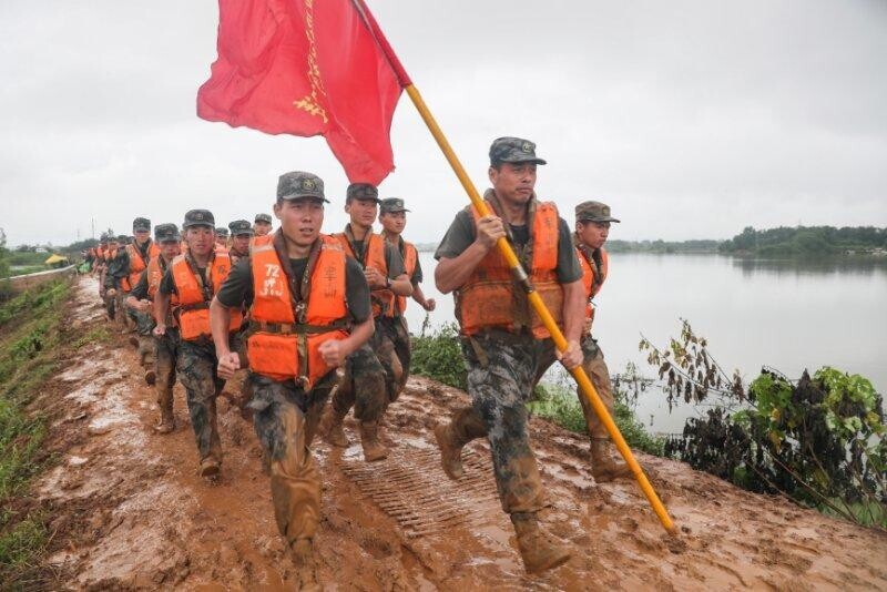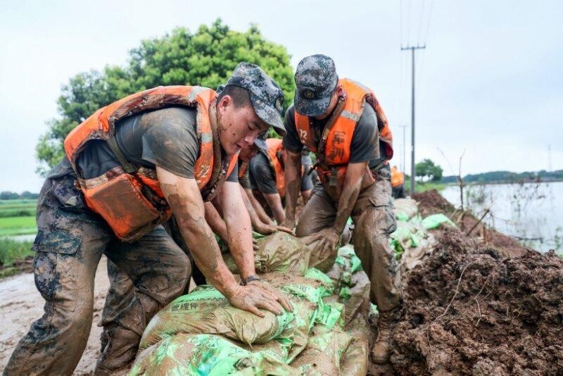 险情就是命令。第72集团军某旅2000余名官兵先后奔赴抗洪一线,对堤坝与防洪墙进行封堵加固,全力以赴开展抢险行动。