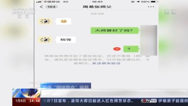 当小张继续追问时,发现已经被所谓的算命大师拉黑删除了。发觉上当的小张只好向警方报案。办案民警介绍说,一些诈骗分子通过微信群、朋友圈打广告,从免费看手相、算命开始,利用受害人消灾祈福的心理,达到骗取钱财的目的,具有明显的欺骗性。