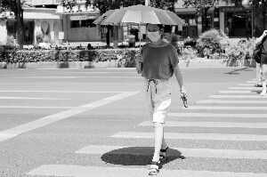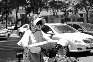 6月17日,南京新街口,出行市民用各种方式防晒