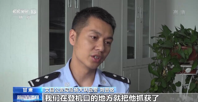 文县公安局经侦大队民警 刘晋铭:我们在登机口的地方就把他抓获了,他随身携带有56条香烟,有中华的,还有莲花烟、炫赫门之类的香烟,原来他是准备要去新疆开拓新的市场。