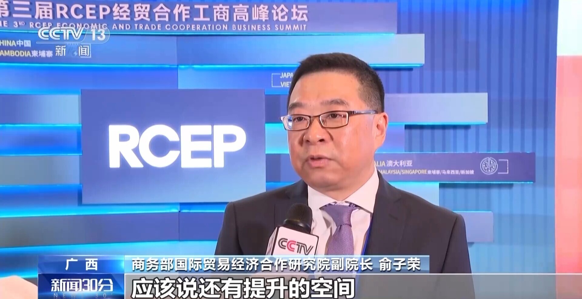 商务部国际贸易经济合作研究院副院长 俞子荣:要引导企业充分地利用好RCEP框架下的规则制度,特别是原产地的区域累计规则来降低贸易成本。目前受访企业RCEP原产地证书的使用效率大概是62%,还有提升的空间。