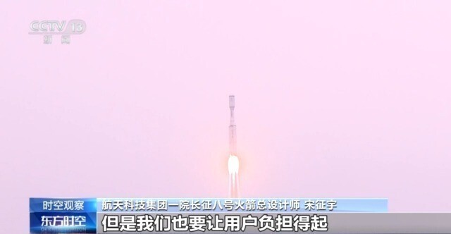 航天科技集团一院长征八号火箭总设计师 宋征宇:使得我们运载能力的余量更大,不仅满足了鹊桥二号卫星的运载能力,还搭载了两颗小卫星,而且还留出了一定的安全余量。“长八”因为反应要快,当时叫“快八”。我们也给自己总结了一个特点,叫“三A”:一个叫accountable,可靠的、值得信赖的,还有一个叫affordable,就是负担得起的,还有一个叫adaptable,适应性强的。我们要有一定的利润,但是我们也要让用户负担得起。按照国际的行价,如果是按照一公斤5000美金算的话,我们长征八号的火箭比5000美金要便宜很多,我们并不是很贵。