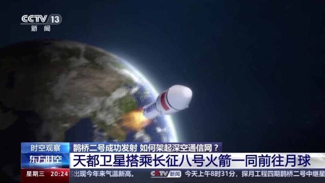 3月20日,鹊桥二号中继星成功发射,探月四期大幕再启。与以往执行探月任务的火箭不同,这次是新一代运载火箭长征八号首次执行探月发射任务,为何选它?鹊桥二号如何架起地月通信桥梁?它和已经在太空中完成计划使命的鹊桥一号有什么不同?中国航天未来如何构建深空通信网?